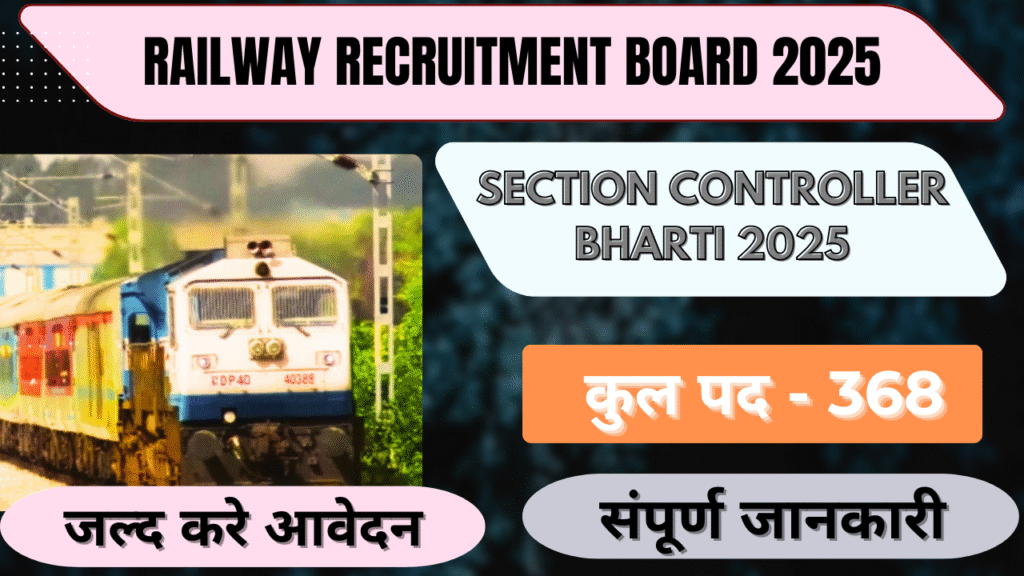 दोस्तों आपके लिए बहुत ही अच्छी सूचना लेकर आया हूं क्योंकि हम लोगों में से लगभग सभी युवाओं को सपना होता है कि रेलवे में करियर बनाना । तो आज में आपके लिए बहुत ही शानदार सूचना लेकर आया हूं जो कि रेलवे भर्ती बोर्ड 2025 [Railway Recruitment Board (RRB) 2025] के Section Controller Bharti 2025 ने अपनी आधिकारिक वेबसाइट सूचना जारी कर दिया है जो भी अभ्यर्थी काफी दिनों से रेलवे की भर्ती Section Controller Recruitment Bharti 2025 का इंतजार कर रहे थेl उनका इंतजार खत्म हुआ रेलवे भर्ती बोर्ड ने अलग-अलग पदों के लिए अलग-अलग योग्यता की मांग की गई हैl इच्छुक अभ्यर्थी इस सूचना को ध्यान से पढ़ें और आवश्यक जानकारी बिल्कुल सही जानकारी प्राप्त करेंl इसमें हम आपको संपूर्ण जानकारी देंगे,आवेदन तिथि से संबंधित,पदों से संबंधित किन-किन पदों पर कितनी रिक्तियां हैं, तथा अलग-अलग पदों के लिए कौन-कौन सी योग्यताओं की मांग की गई है, इनके बारे में हम आपको विस्तृत जानकारी अवगत कराएंगे जिससे आवेदन करने में आपको कोई भी समस्या का सामना न करना पड़े अधिक जानकारी के लिए हमारे साथ बने रहेl